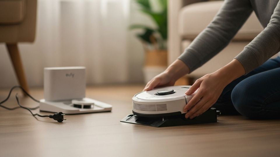Stop scrolling for a second; your RoboVac might need a nap. Lift the little champ off its dock and turn off every switch you can find. If you’re feeling thorough, unplug the charging base too.