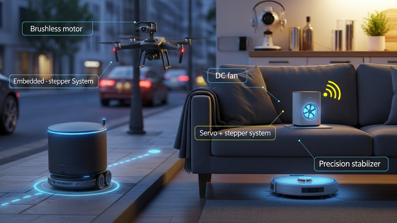 A cylindrical delivery bot trundles by, steering on the fly with a cocktail of stepper and servo motors only courier nerds notice. Even that drone circling above, sending kid-at-heart snaps to its owner, survives off brushless motors that sound as fierce as a swarm of bees yet handle like a camera on a calm day.